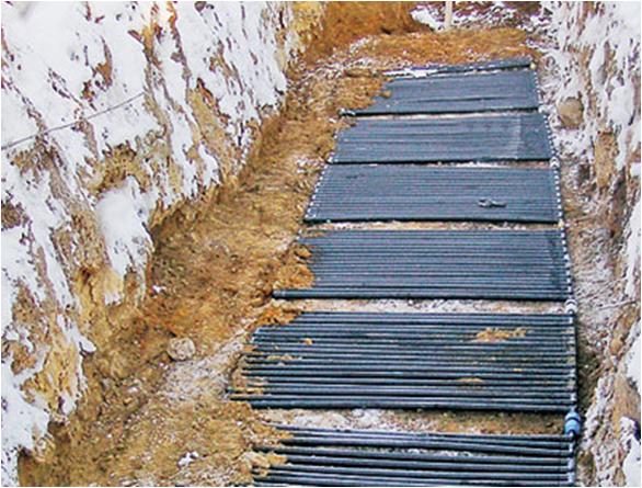 Водний колектор збирають із звичайних ПНД-труб, заповнених теплоносієм